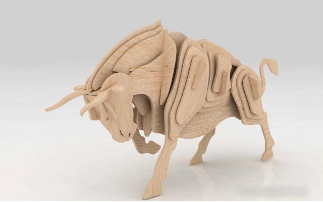 🐶 3D Ahşap Boğa Hayvan Modeli
